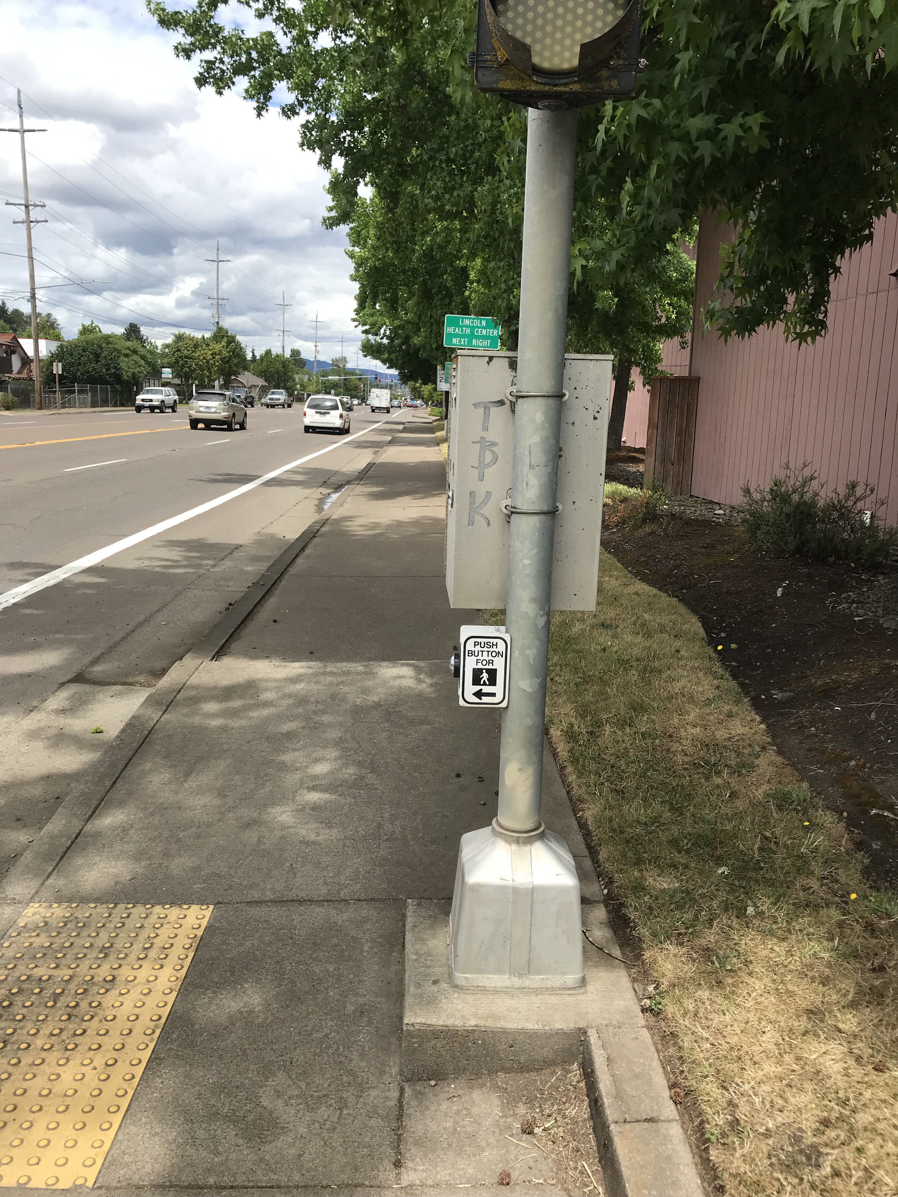 These mid-block crossings have center refuge islands for added safety, and have pedestrian-activated, round, yellow, flashing lights. These crossings were installed around 2005 with funding from the Transportation Enhancement Program (TEA-21), funneled through ODOT to the City of Corvallis. In other parts of Corvallis there are mid-block crossings that are more modern, with a different style of flashing light called a rapid rectangular flashing beacon (RRFB).
