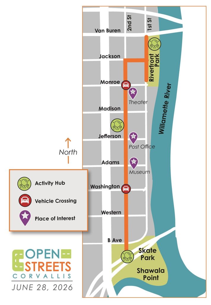 All streets on the designated route will be closed to motorized traffic and on-street parking during and prior to the event. Professional flaggers will be stationed at two vehicle crossing locations along 2nd Street – Monroe Avenue and Washington Avenue.