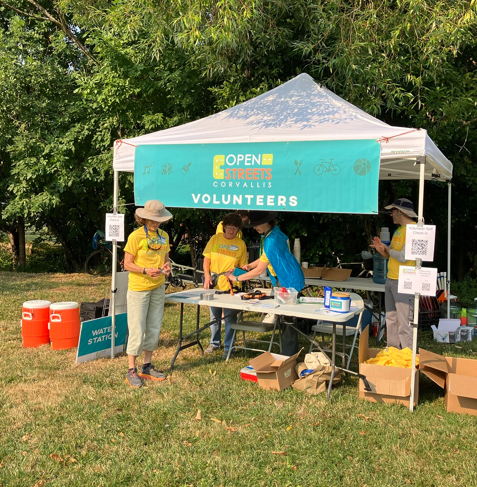 - When you arrive, one of the volunteer co-coordinators will give an overview of how to use the check-in kiosk and what items to distribute to volunteers checking in. The volunteer tent also has resources like a first aid kit, emergency contact list, and missing child protocol.